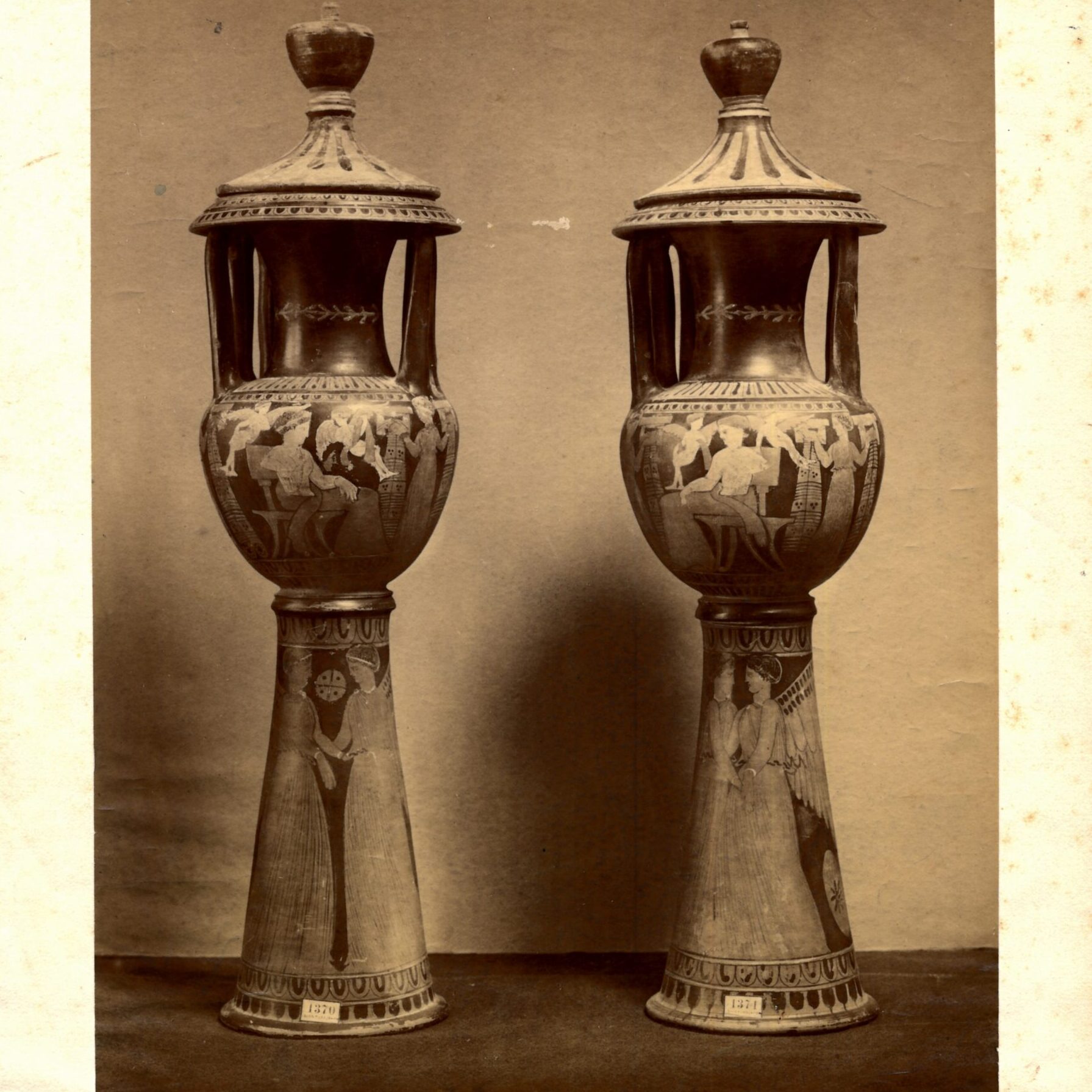 La fotografia rappresenta due Kylix a figure rosse conservati al museo archeologico Nazionale di Atene.